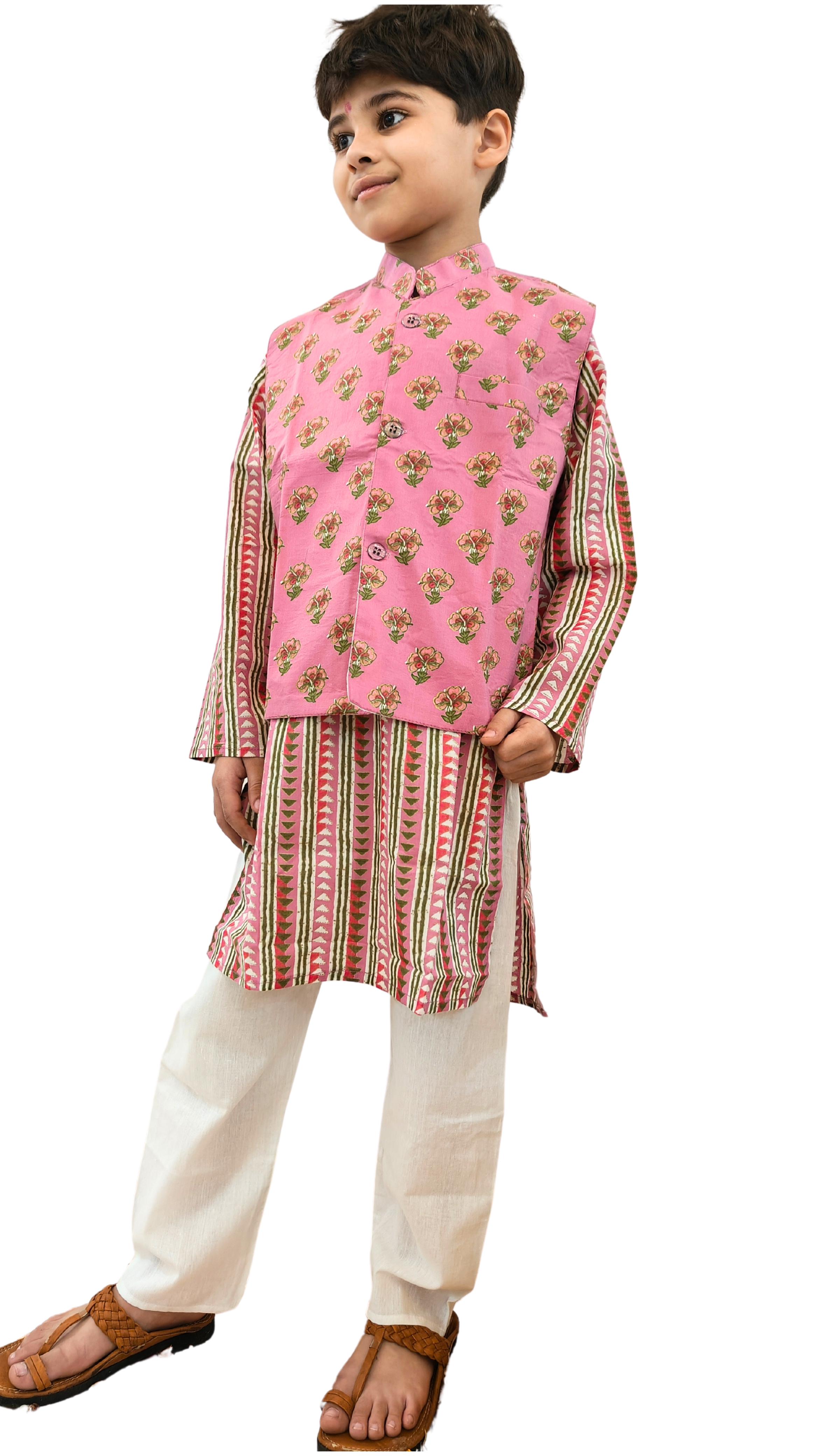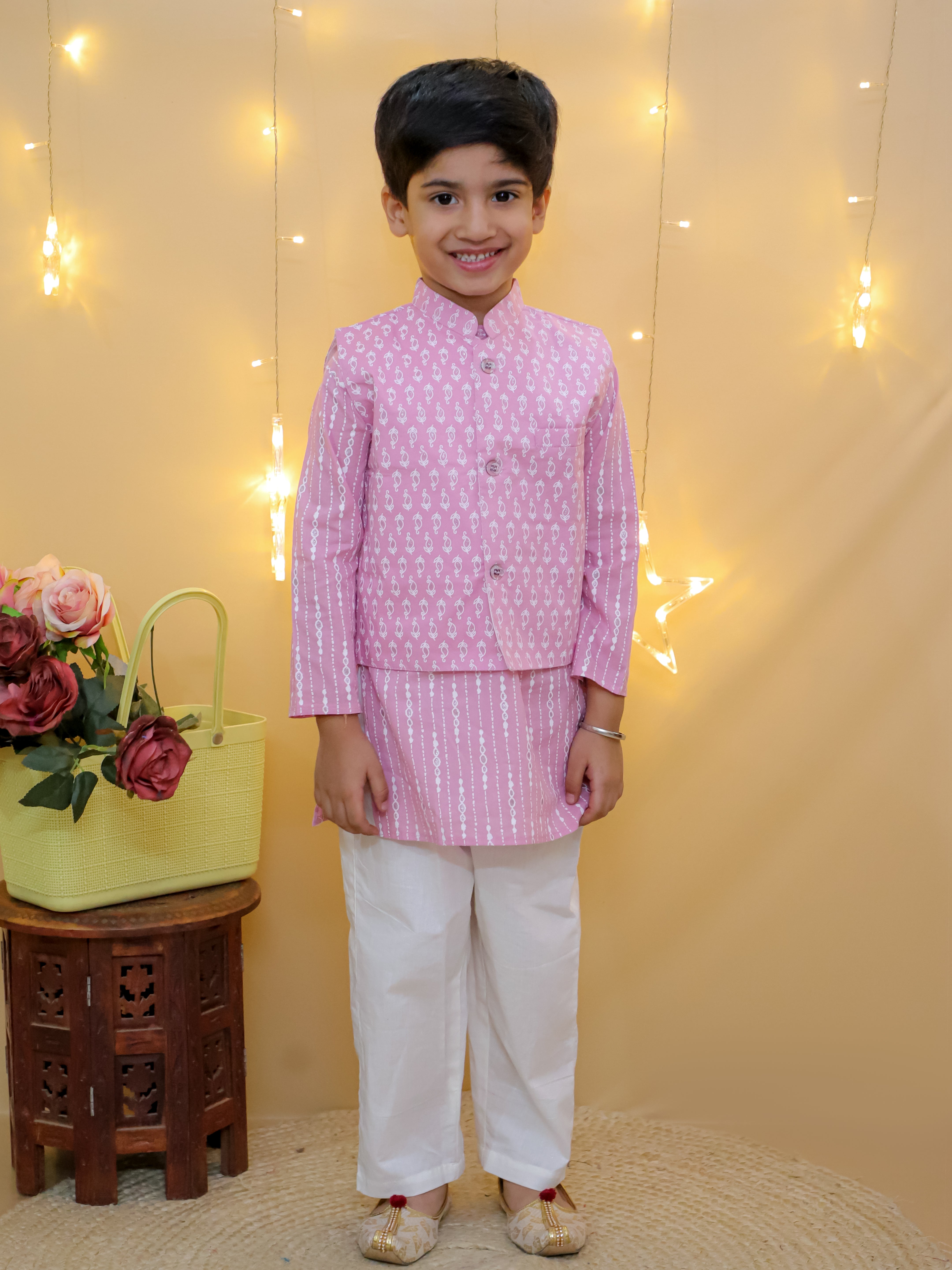 Boys Ethnic Blush Charm Kurta Pajyama & Jacket Set
