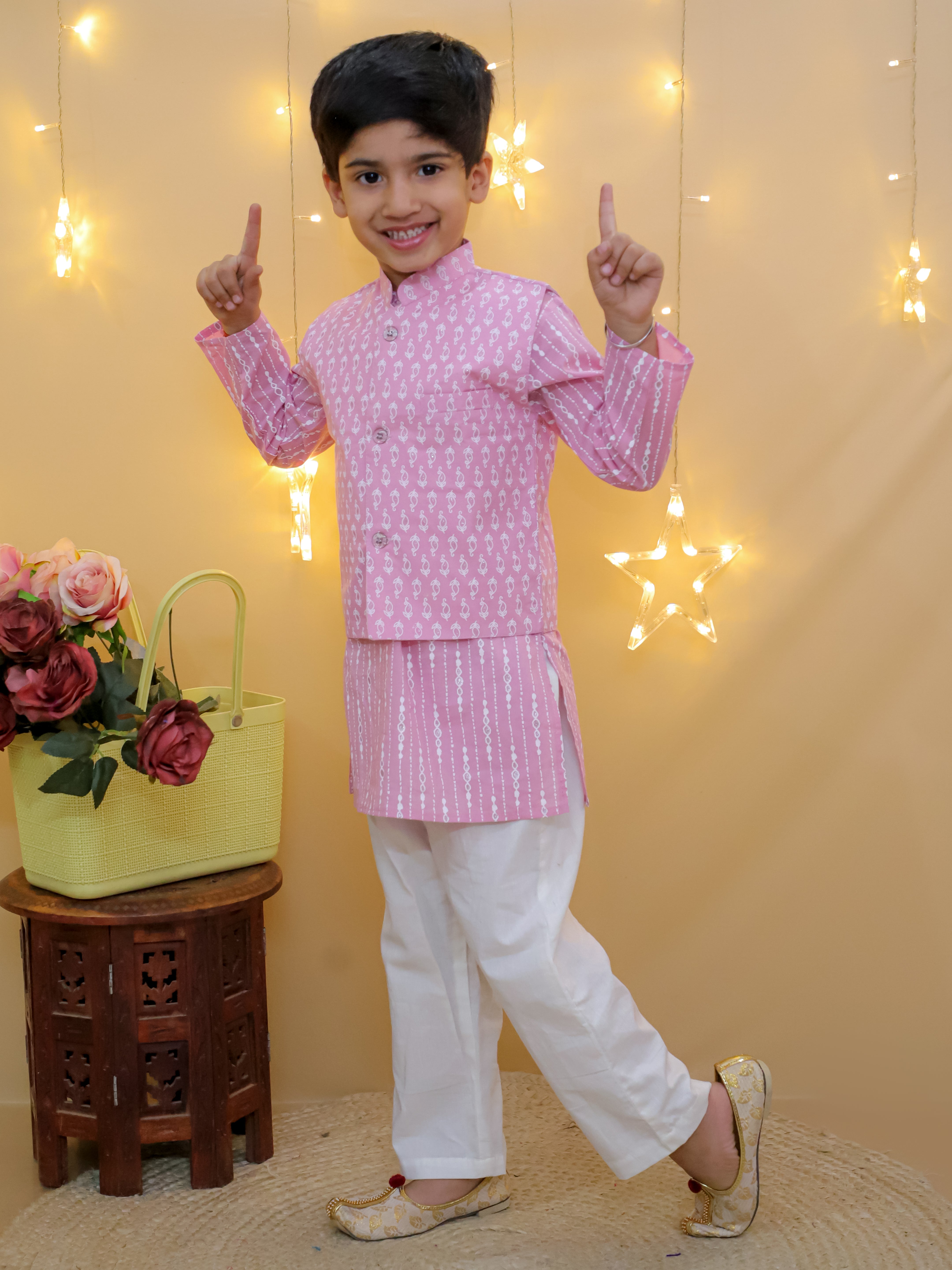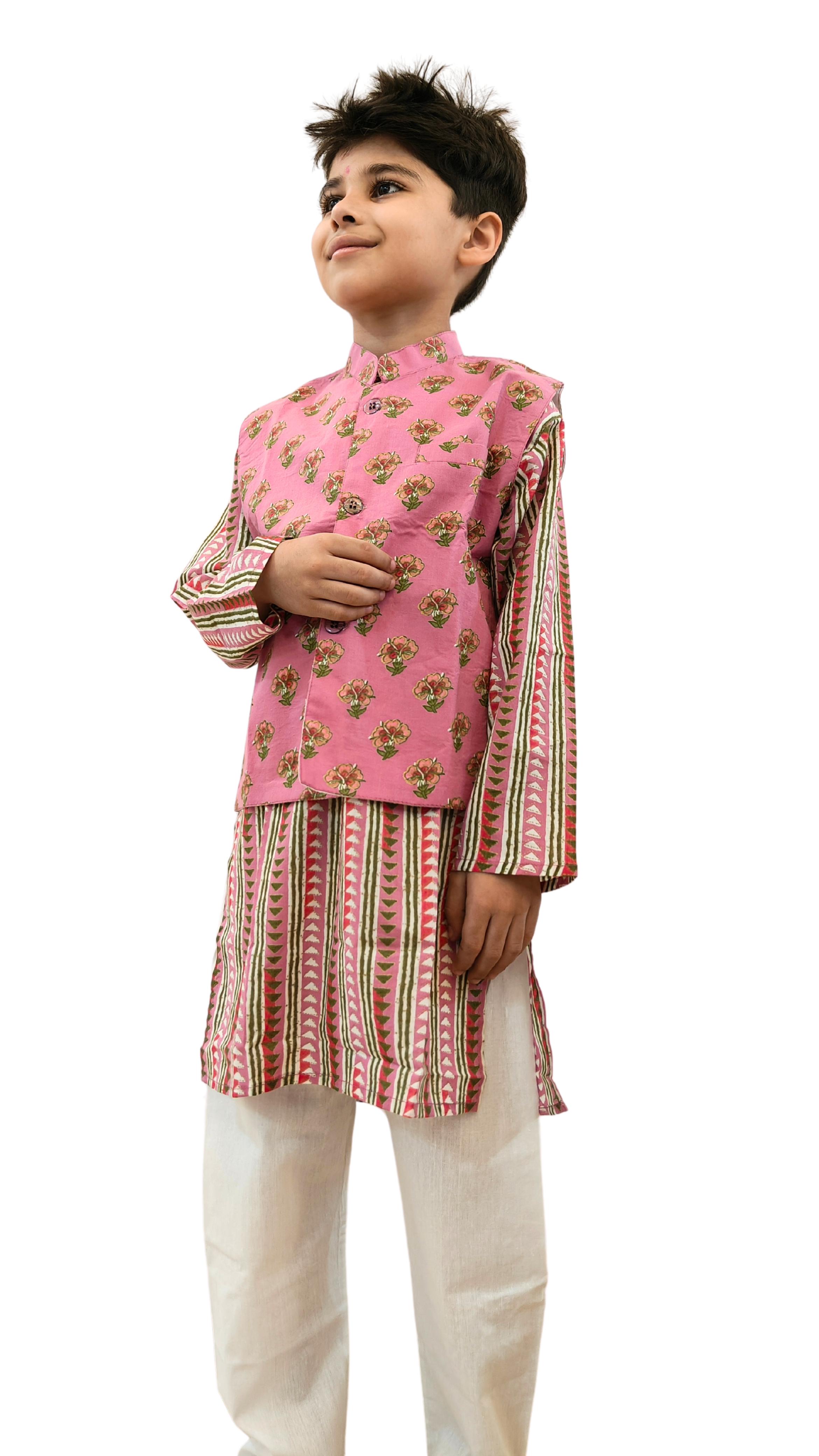 Boys Ethnic Blush Charm Kurta Pajyama & Jacket Set