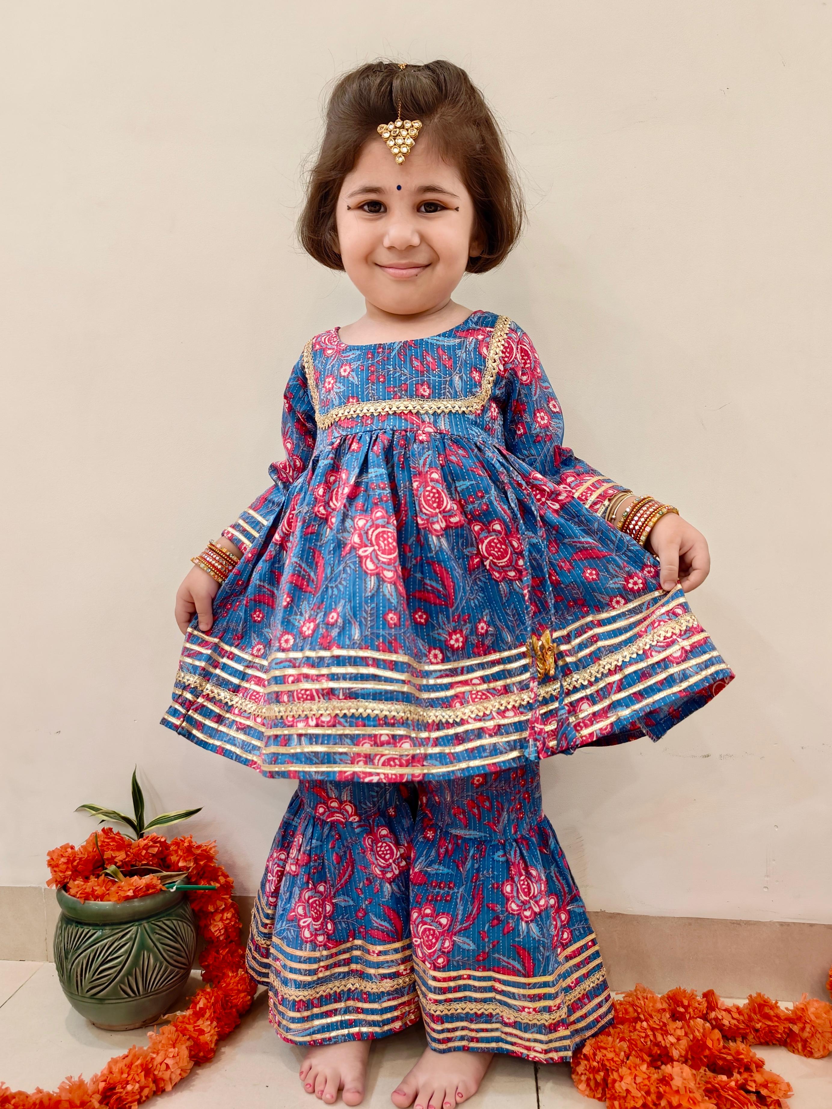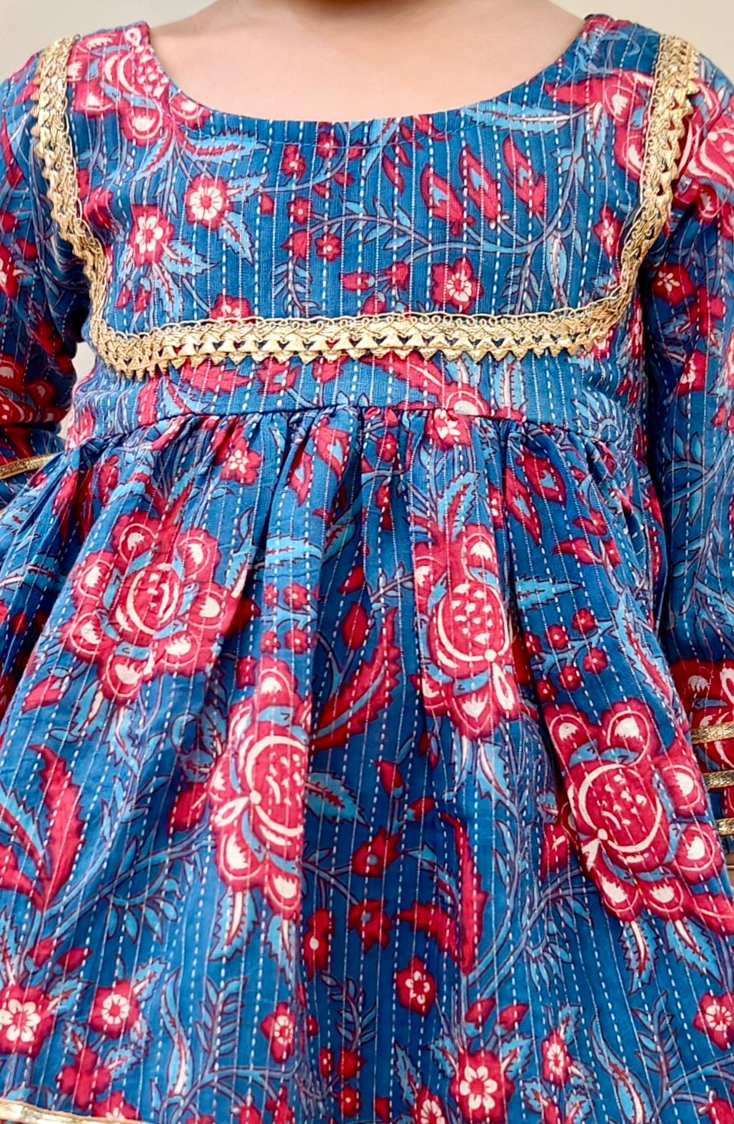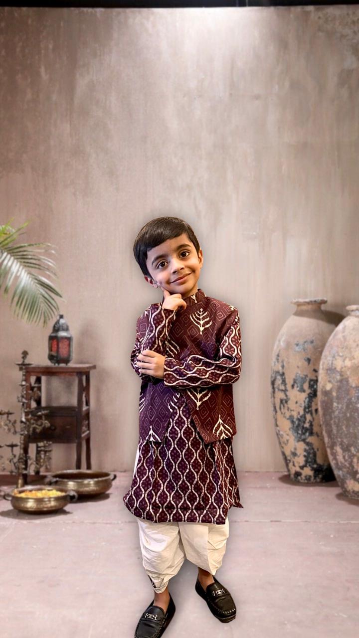 Boys Ethnic Floral Printed Pure Cotton Kurta with Pajama and Nehru Jacket