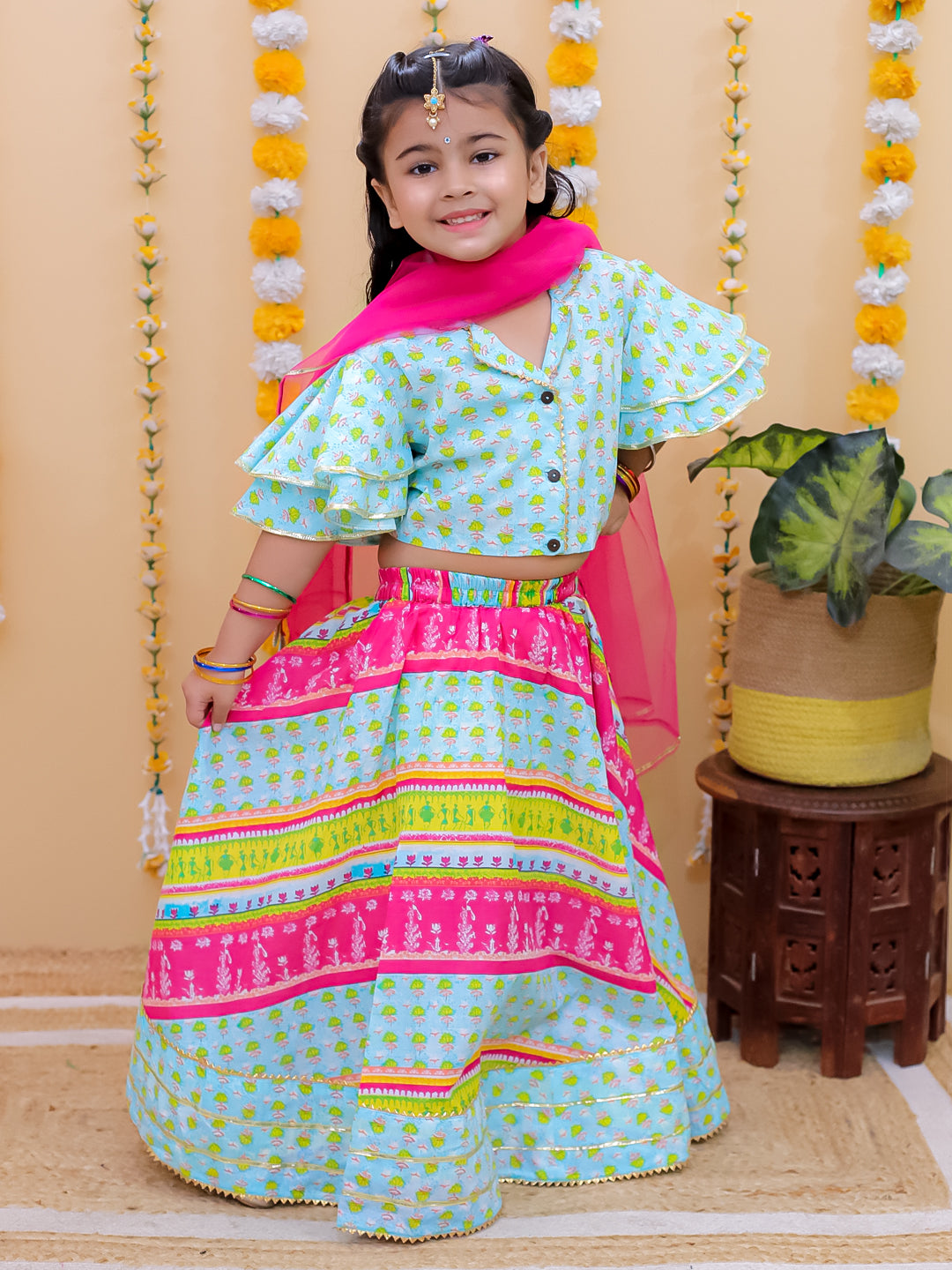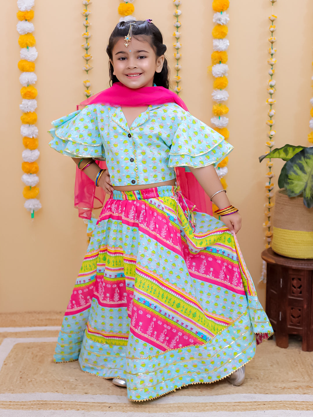 Girls Ethnic Rainbow Radiance Lehenga with crop Top & Dupatta