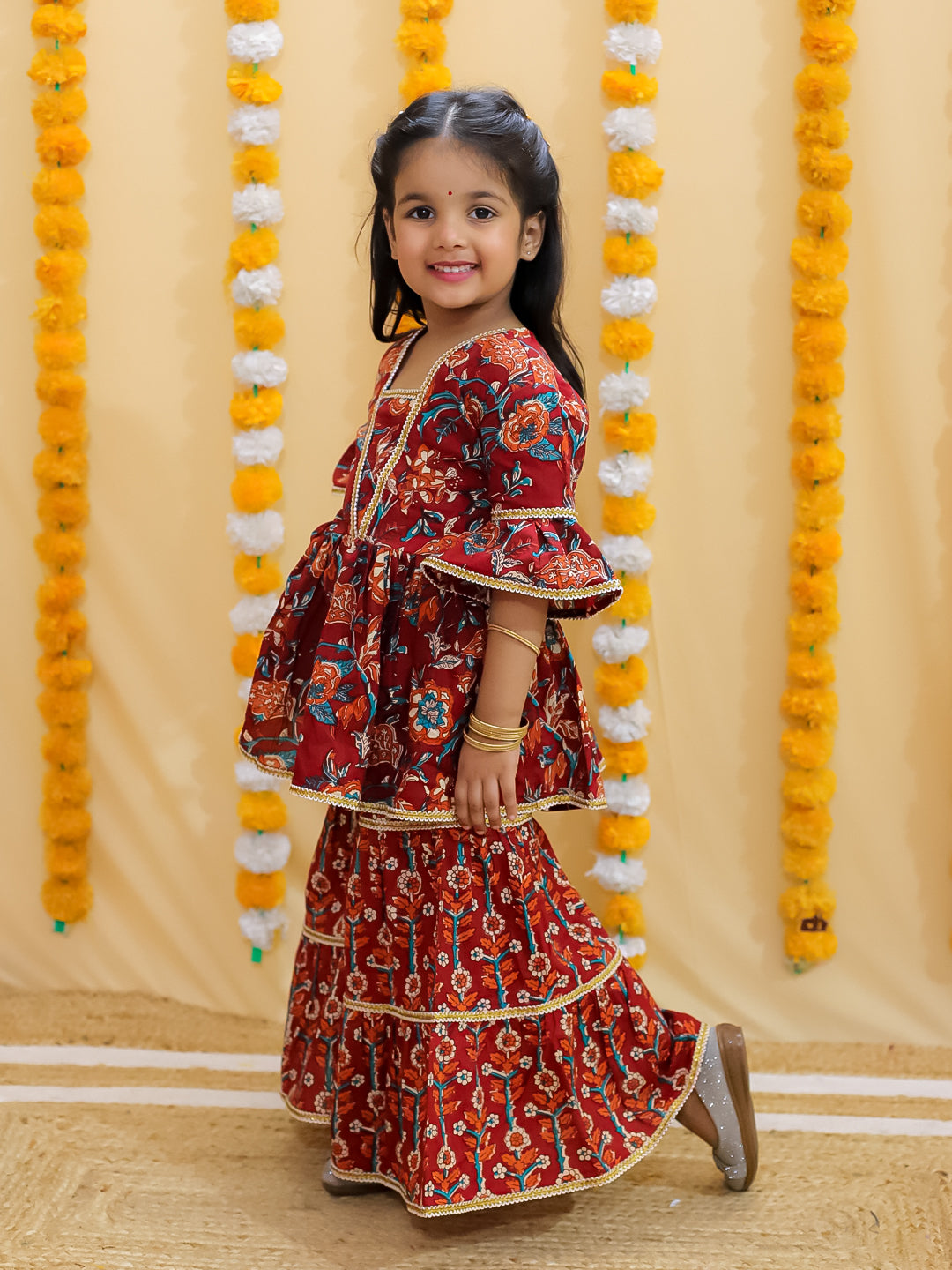 Girls Ethnic Motifs Printed Gotta Patti Pure Cotton Anarkali Kurta with Sharara