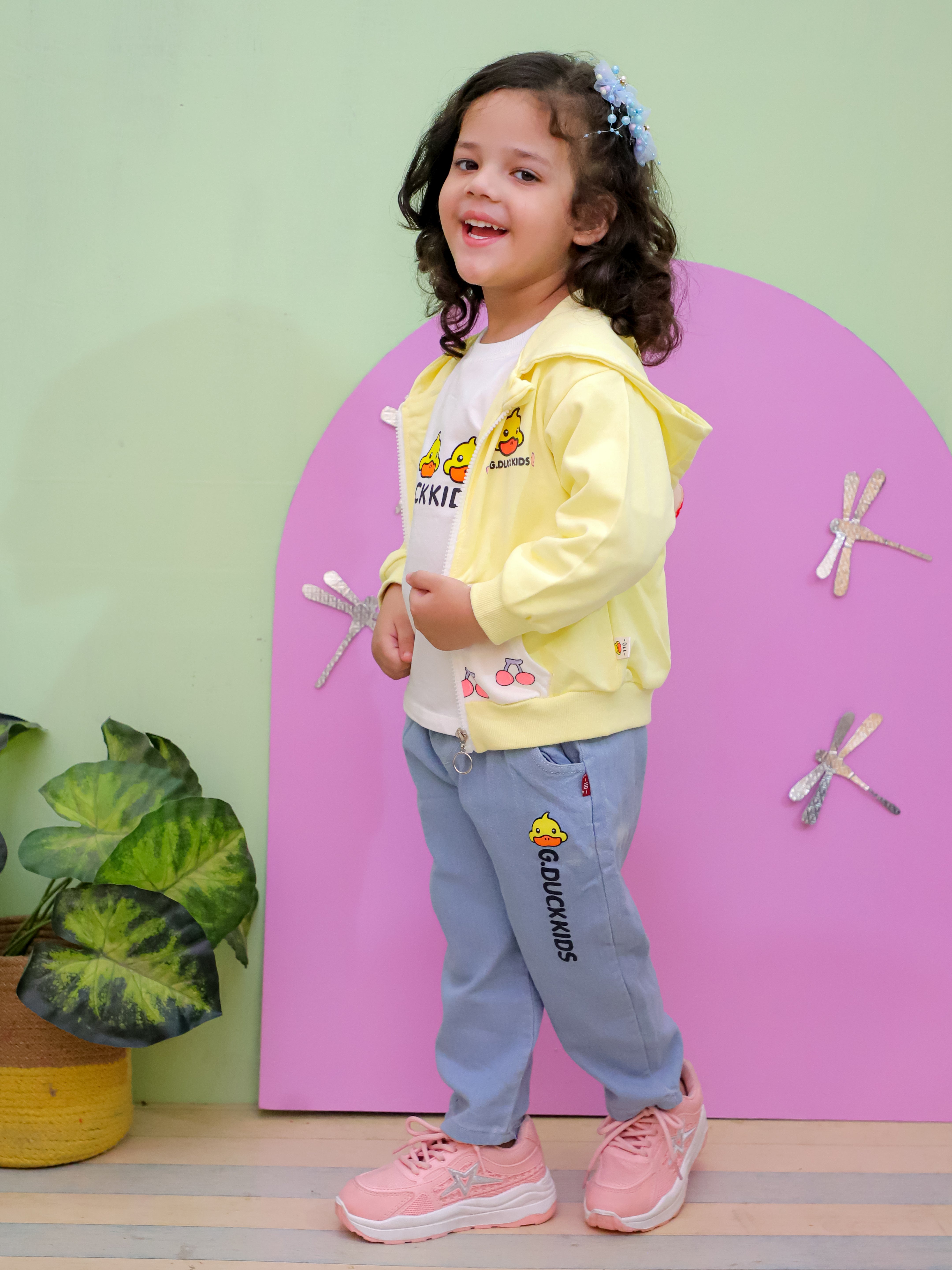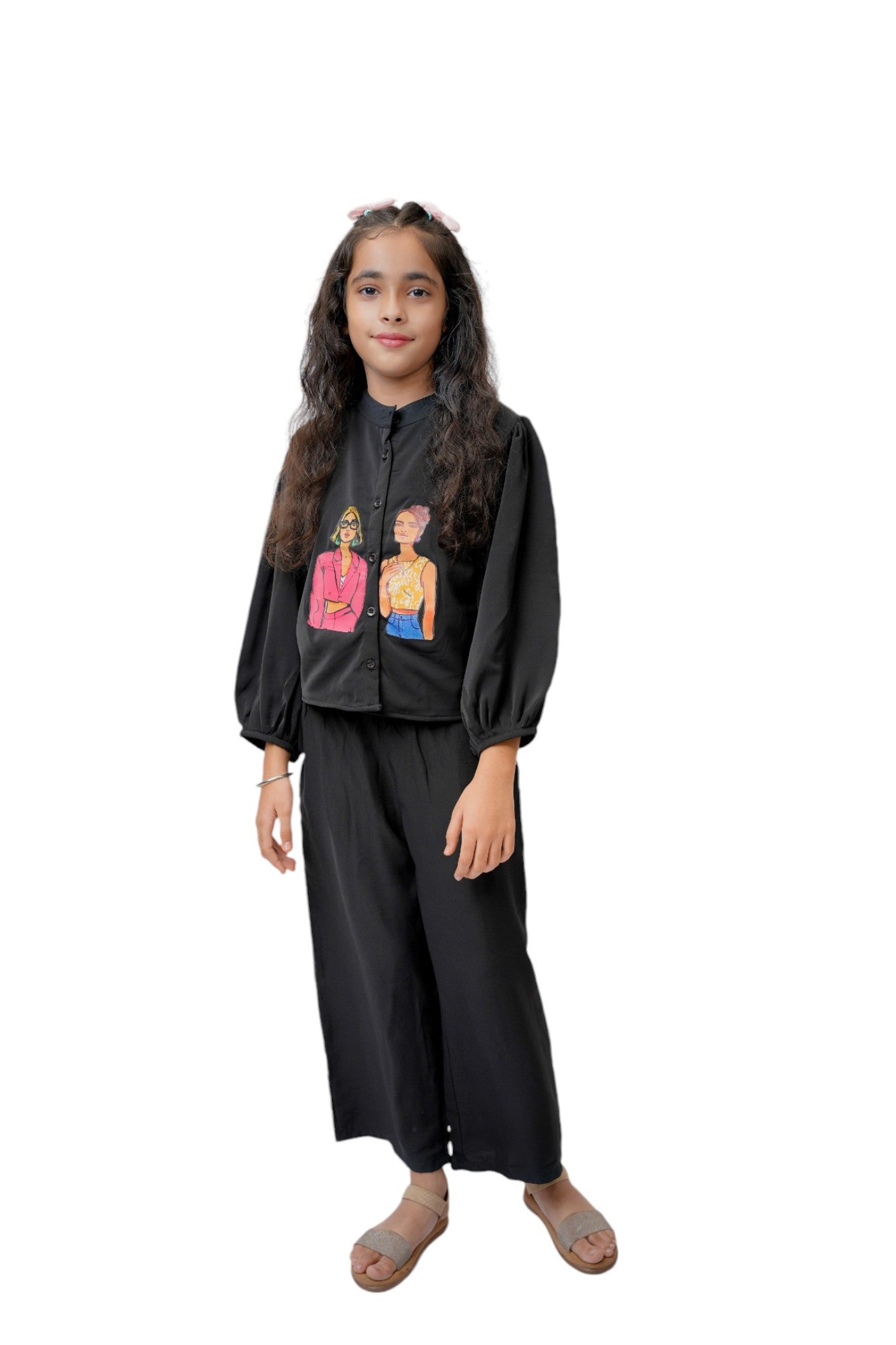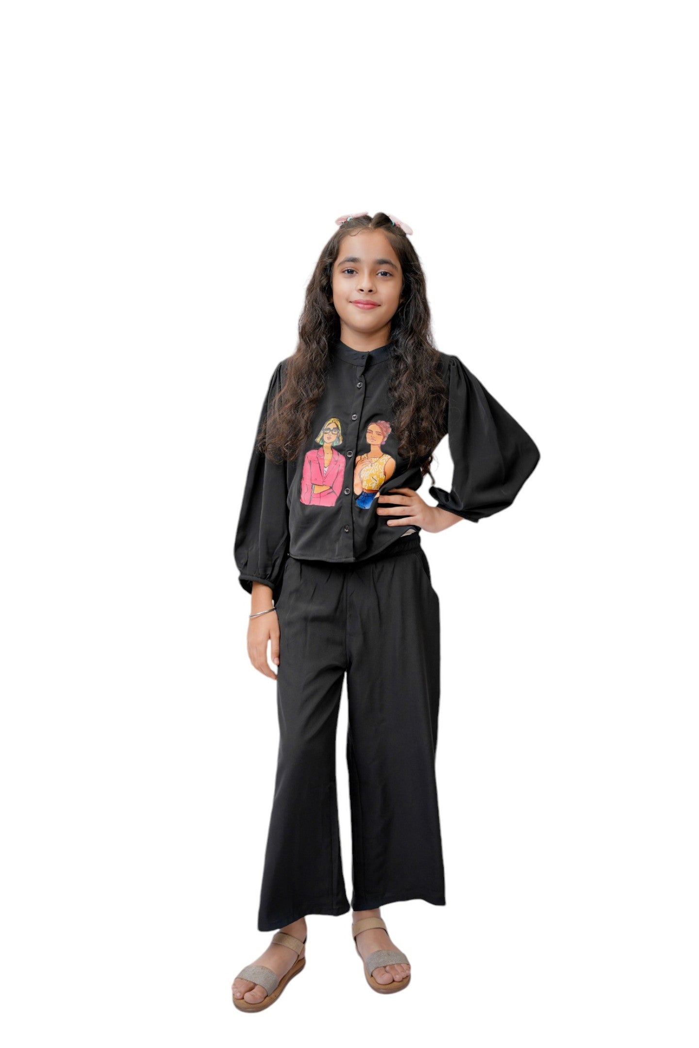 Girls Conversational Printed Spread Collar Pure Cotton Shirt with Trousers